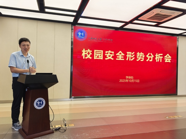 为进一步加强校园安全管理,切实维护和谐稳定的育人环境。2025年10月15日,学保处在昇华楼四楼会议中心召开2025-2026学年第一学期校园安全形势分析会。学校监事会副监事长曹云林、副校长徐子卿出席会议并讲话,学保处、心理咨询室及各二级学院党总支正副书记,特别邀请马克思主义学院院长刘天翔参会。会议由学保处副处长张军主持。