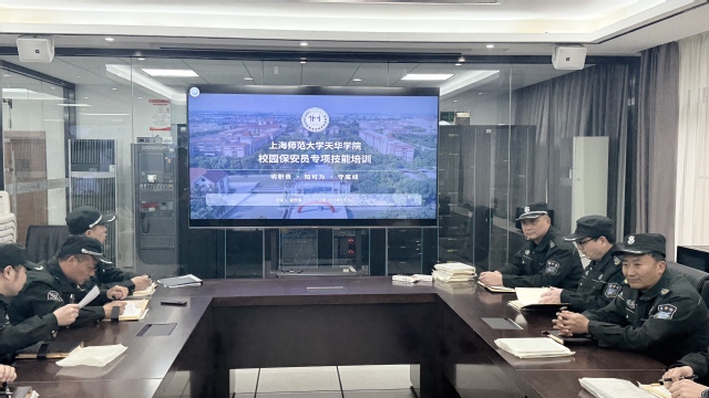 为进一步规范校园安保履职行为,提升安保队伍专业化、法治化、规范化水平,筑牢校园安全第一道防线,3 月 26 日,上海师范大学天华学院在应急指挥中心开展校园保安员专项技能培训(第一课时),全体校园保安员参加培训。